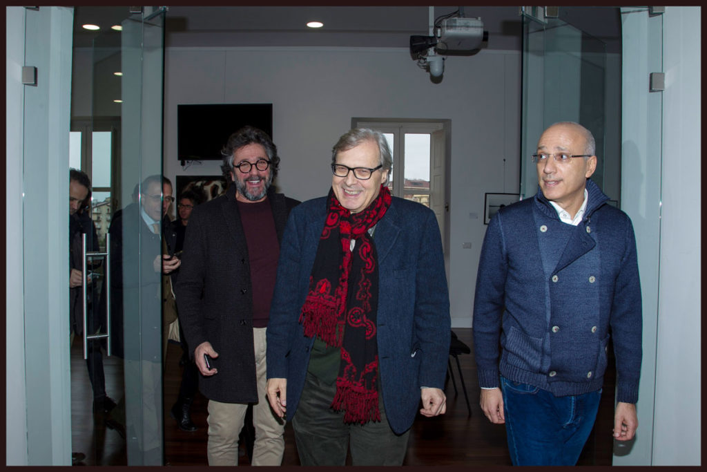 Sgarbi, nell’occasione accompagnato dal prof. Mario Caligiuri e con a seguito un nutrito gruppo di amici e curiosi, si è soffermato su ogni opera, con la curiosità che lo contraddistingue, non mancando commenti e considerazioni con la verve che gli è propria e che trasforma le sue espressioni di pensiero in vere e proprie lezioni su artisti, scuole e movimenti.